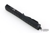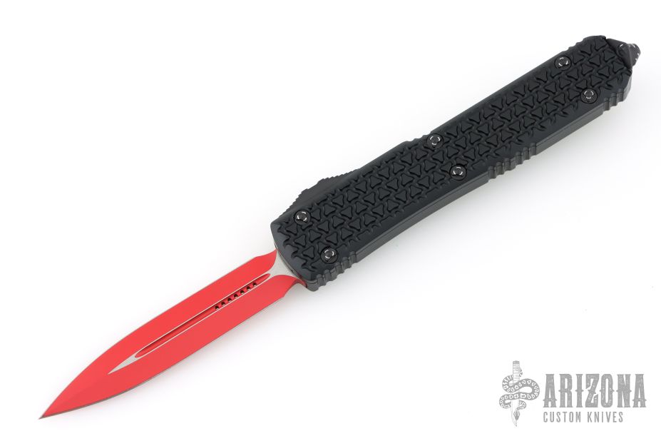 This Ultratech OTF automatic by Microtech features a D/E red blade. Black aluminum contoured frame with black tip down stainless steel clip. Dated 07/2021 and s/n 5398. Excellent condition. Includes original box and papers.