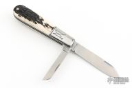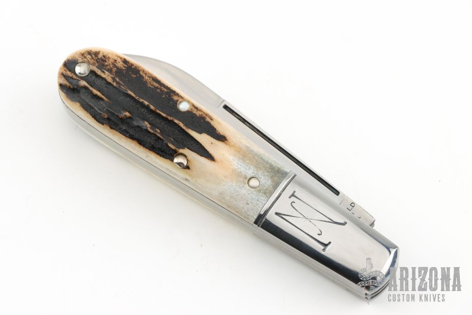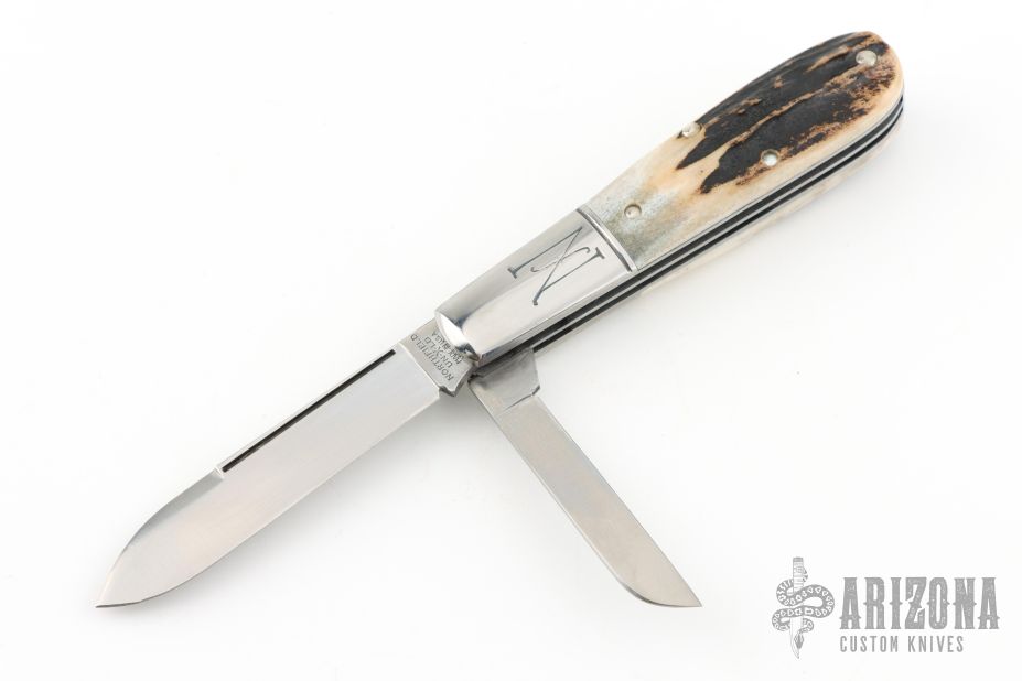 This slipjoint from Northfield features two mirror finished blades with nail nicks. The handle has steel bolsters, Sambar stag covers with steel liners, and steel springs. Has half-stops. Includes original packaging. Has a couple light scratches, otherwise excellent condition. 26 made.