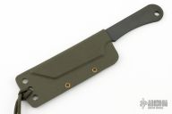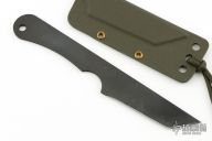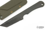This "Woo" Tanto by Newt Livesay of Wicked Knife Co. features a black tanto chisel ground blade with .128" blade stock and 1.026" blade depth, full tang construction. Comes with a kydex sheath and original papers. Has some light sheath marks, otherwise excellent condition.