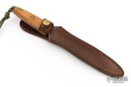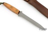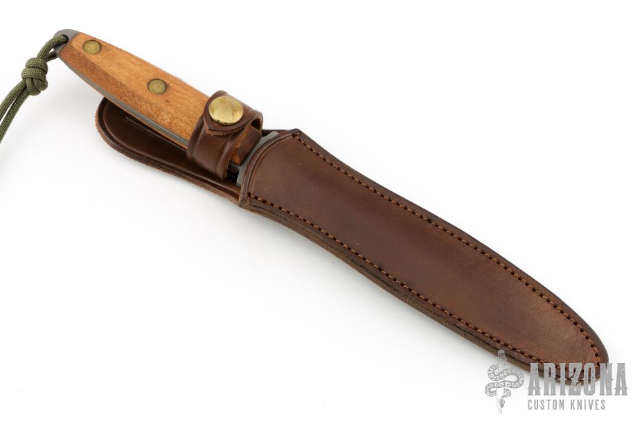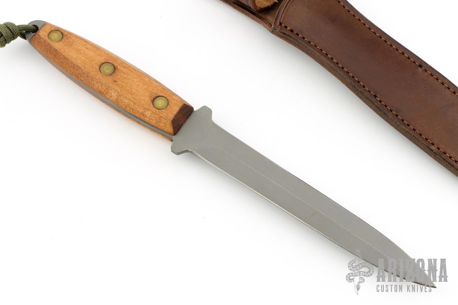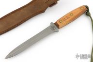 This EK knives Pig Sticker features a bead blast finish surgical stainless steel double edge blade, .153" blade stock and .848" blade depth, full tang construction. The handle has wood scales. Nice classic feeling knife. Comes with a brown leather sheath and original box. Excellent condition.