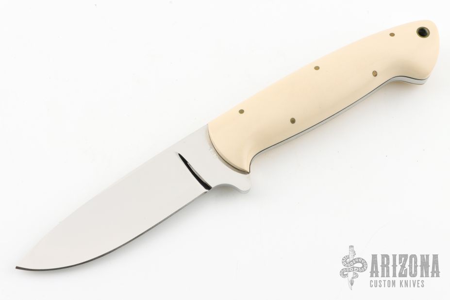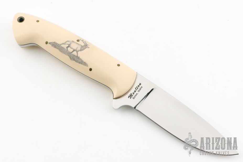 Visit this maker's website: Moulton Knives. "I started making Custom Knives as a Full-Time maker/designer in 1991. I currently use CPM-154CM, a VERY new Version of the standard 154CM steel. It is a very clean powdered version of the standard 154CM,still in its primary developmental stage. I am one of very few knifemakers that have access to this steel, until it is through the development & analysis process. I also occasionally use the standard ATS-34. I also use Damascus steel forged by some of my friends, in my creations.All of my knives are made freehand. That is, I do not incorporate the use of mills, lathes, surface grinders, etc....in my shop, there are just a couple of basic belt grinders, disc grinders, a drill press and a band saw. (I feel that as long as I can make a modest living building knives with a minimum of mechanical assistance, relying instead on my own hand craftsmanship then that is the way I prefer it). And I hope that this manner of making knives will in the long run give my knives a better value when I am long gone. I strive, above all, to build a high quality product that the discriminating buyer will be proud to own. All knives are created by stock removal and are hollow ground, most all of them having tapered tangs and dovetailed bolsters. Then, with each piece I create, I offer a personal satisfaction guarantee because I stand behind my work and it's underlying quality is paramount.I strive to create designs that are unique in the custom knife market. I want people to know when they see one of my knives in a collection, "that's a Moulton"! For me, this is the ultimate satisfaction I get from this work."