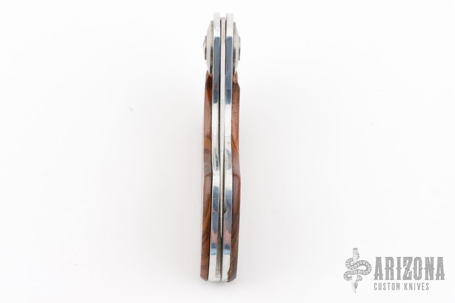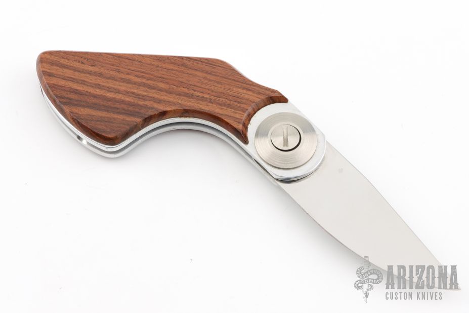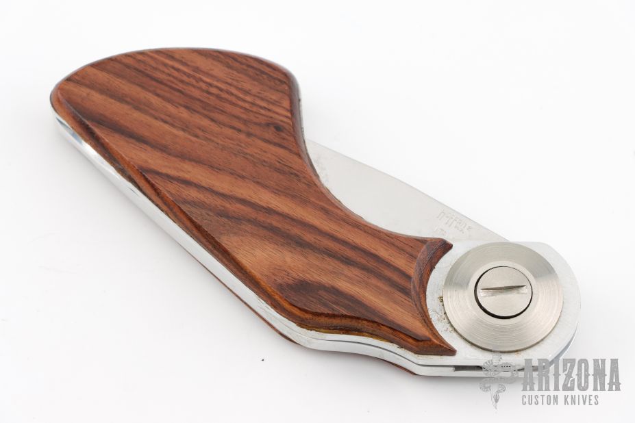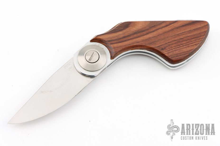 This Hoffritz folder features a satin finish blade and satin finish aluminum frame with wood scales.
