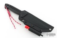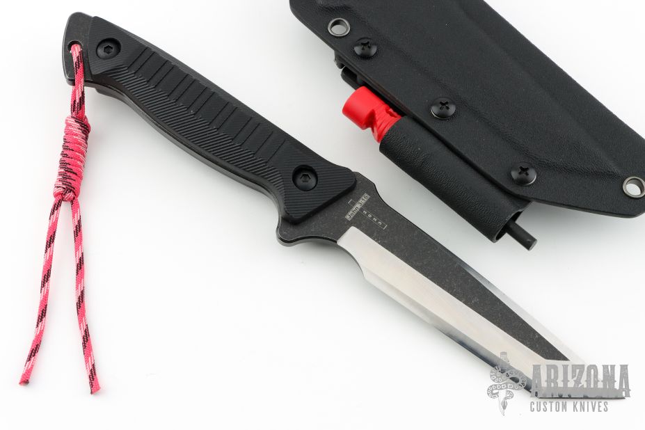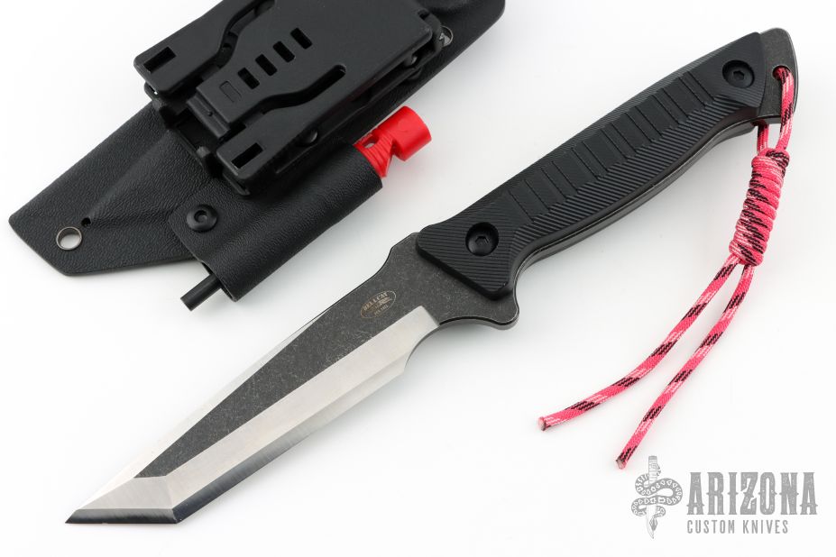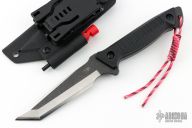 This Tanto by Hellcat Knives features a two-tone blade with .199" blade stock and 1.089" blade depth, full tang construction. The handle has black composite scales. Comes with a kydex sheath with TekLok and fire steel. Has some light scratches, otherwise excellent condition.