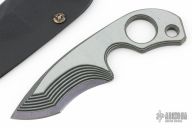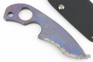 This SLCC by Warren Thomas is G-10 and titanium with his signature fingerprint anodized finish and carbide edge, .296" thick and 1.671" blade depth, full tang construction. Very cool combo and extremely light knife. Comes with a Kydex sheath. Has a couple light scratches, otherwise excellent condition.