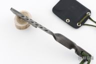 I have been interested in all kind of edged tools and weapons since i was a small child. Actually I made my first "knife"using a scrap iron bar at the age of 7 years old. I have been making knives in a more serious way since 2002. With a technical background as a weapon smith and armorer and after 18 years of working in this sector I am interested in tactical oriented edged tools. I am entirely self-taught and i try very hard to make original designs. My knives are 100% handmade using only the most basic tools. I do not have a modern belt sander or an electric furnace. I use a handmade propane forge, my old anvil , a small angle grinder, and many hand files . The passion I have for knives is the real driving force for my work. I use only high carbon alloys and especially tool steels such as Swedish o-1 tool steel, Austrian D-2 tool steel, L-6 steel as well as old files, steel cables and leaf springs of MAN trucks (5160). All my knives are razor sharp and they stay in that condition even after hard usage. For my larger knives and axes I use a zone hardening /tempering method so as to combine strength and sharpness but without brittleness. I want to make my knives overbuilt so as to be tough and strong for the needs of my clients. I do not make knives for collectors but only for hard working users such as L.E. officers, members of the Special Operations community, and anyone wanting a tough sharp blade. I do not have a basic line of knives but I make every knife to be one of a kind. If someone has an interesting idea about a knife and wants to see it made I would be glad to help him.