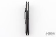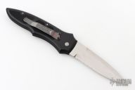 This Cobra side-opening automatic is from the custom series and features a tumble finished partially serrated blade with false top edge. Coil spring. Sliding safety. Black aluminum handle with rubber inserts, tip down black stainless steel clip. Comes with original box. Has a couple light scuffs, otherwise excellent condition.