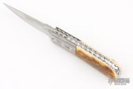 He finished making his first knife on December 13, 2002 and continued the construction of fixed knives for a little over a year before starting the folding route.