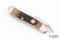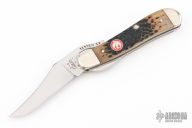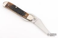 This Russlock by Case knives features a polished blade with friction folder style opening. The handle has nickel silver bolsters and cap, jigged bone covers, nickel silvers liners and stainless springs. Has a couple light scuffs, excellent condition otherwise.