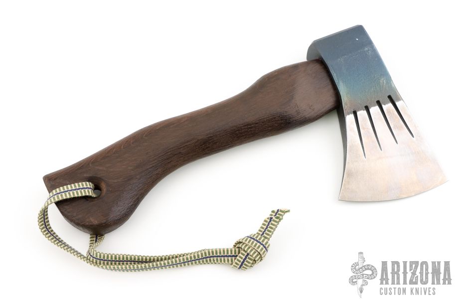 From blade edge to hammer poll is 5". Warikomi Head. Comes with original leather sheath and papers. Excellent condition.