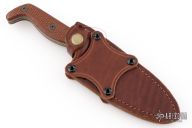The knife comes with a multi carry thick cow hide sheath which enables the user to carry it horizontally or vertically on the belt with a secondary retention strap.