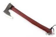 This Viking Berserker Axe by Brothersville Forge features a forged bearded axe head with an 18" wood haft with brass viking head embedded in the butt. Comes with a zippered case. Has a few scratches, otherwise excellent condition.