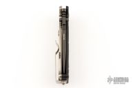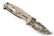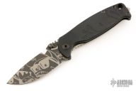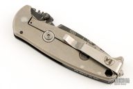This HEST/ F Mr. DP LE Framelock Folder (#15/250) has a drop point blade with dual thumb studs, bottle opener, and thumb ramp with integral wire strippers. Handle is milled black G10 and tumbled titanium, with stainless steel tip up clip and removable glass breaker, 1/4" hex socket driver/ lanyard hole, and patented LionSTEEL Rotoblock System - with new single spoke design - that locks the lockbar into the open position. Comes with original box. Excellent condition. This piece shows no signs of use or carry.