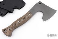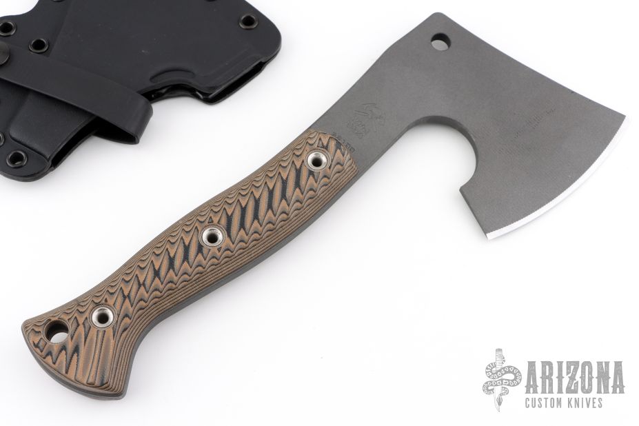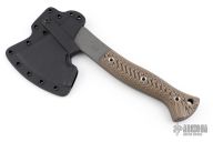 We are pleased to offer the Bushcrafter, a wonderful outdoor design by knife maker and designer, Tom Krein. Tom designed an instant classic, an outdoor companion that is ready for every adventure. Its compact length makes it easy to transport and stow, and a pleasure to use. Around the camp it’s a versatile tool for cutting wood, food preparation, clearing your camp site, fire starting and any other cutting chores. The Bushcrafter has 3D contoured G10 handles for a not to aggressive grip, wet or dry. We included a molded kydex scabbard. Excellent condition.