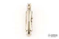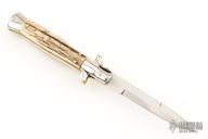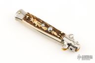 This Picklock Auto from Dolphin D.M. features a bayonet ground blade with false top edge. The handle has stainless steel bolsters and pommel with stag scales, brass liners and steel backspacer. Comes in a Campolin leather sheath. Excellent condition. This one was tuned and polished by Greg's Effects and has a COA.
