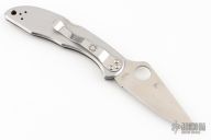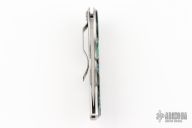 This C11 Delica from Spyderco has been modified by Santa Fe Stoneworks. It features a satin finished clip point serrated blade with thumb hole and notched thumb ramp. The "A" side of the handle is comprised of mosaic stone overlays over a steel frame. The stainless steel clip is reversible for tip up or tip down carry. Lanyard hole in pommel. Comes in an AG Russell zipper case. Excellent condition.