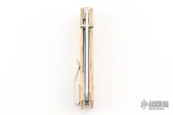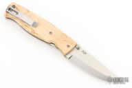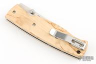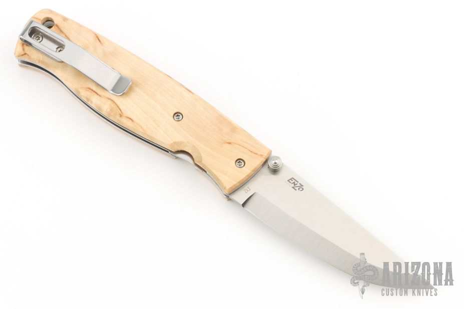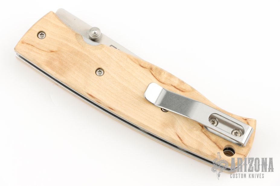 The good cutting performance from a classic Scandinavian knife, the Puukko, is translated into this modern folding knife. The Birk 75 has received many positive reviews for its technical superior design, rugged durability, and its eye popping good look. Now the second version is out featuring scales flush with the liners, clip placed for deep pocket carry, countersunk screws, and the liner lock changed for easier opening and closing. Flat, chamfered scales in Carbon Fiber or in Curly Birch, the choice is yours.