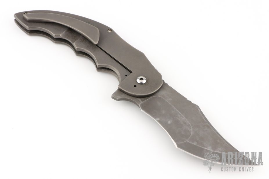 "Each blade is handmade by me in the USA using manual machines. I specialize in hard use tactical folders with the best materials I can get my hands on. My current blade steels are RWL-34, stainless steel Damascus, and San Mai. I use various materials that include Titanium, Carbon Fiber, Zirconium, MokuTi, Timascus."