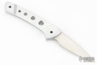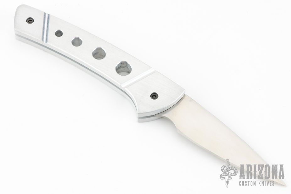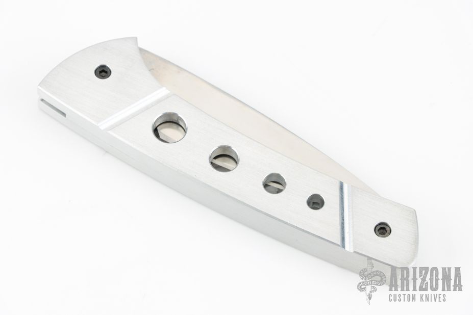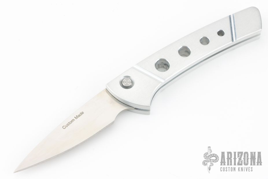 This automatic by DiGangi features a hand-rubbed satin finish blade and a satin finished frame. Strong and fast leaf-spring action. Excellent work. Comes with a nylon belt sheath. There are some scuffs and scratches, great condition otherwise.