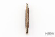 This knife by Weidmannsheil features a tumble polished blade with nail nick. The handle has nickel silver bolsters, jigged bone covers, brass liners and steel spring. Has a few light scratches, otherwise excellent condition.