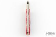 This lockback by N.L. Smith features a mirror finished clip point blade with nail nick. The handle features mirror finished dove tail nickel silver bolsters, nickel silver liners, steel rocker bar, and red jigged bone covers. Has some scratches, and a couple light rust spots on the blade edge. Excellent condition.