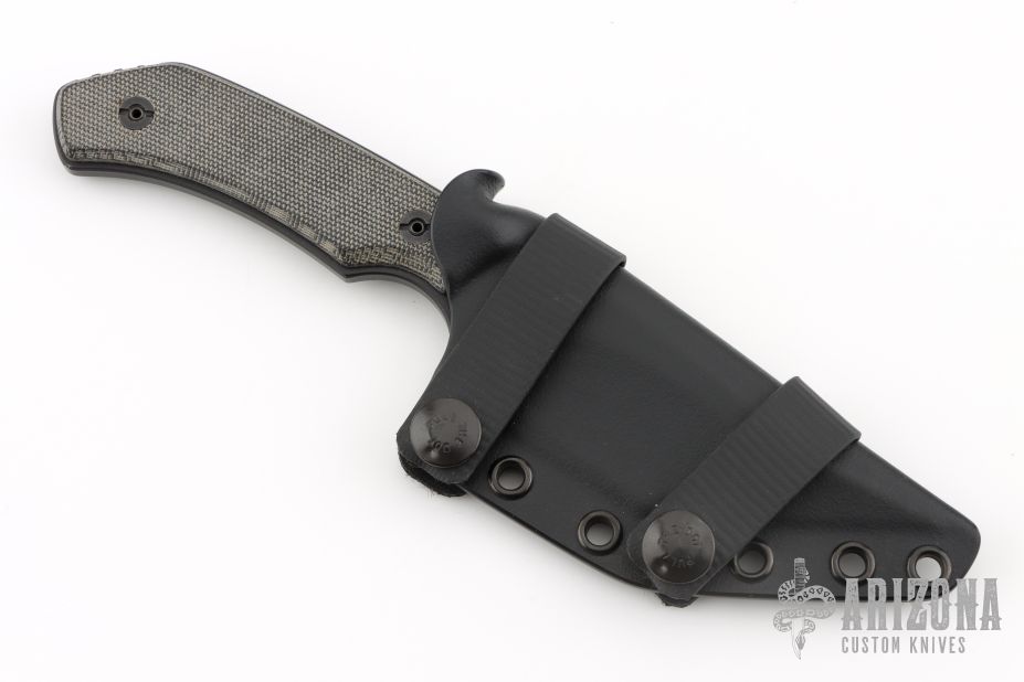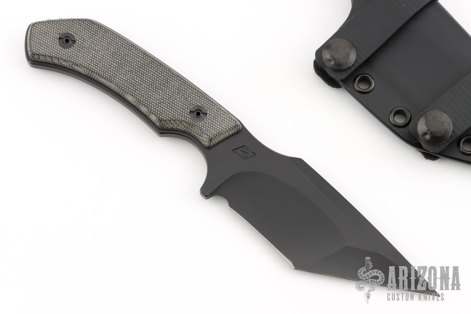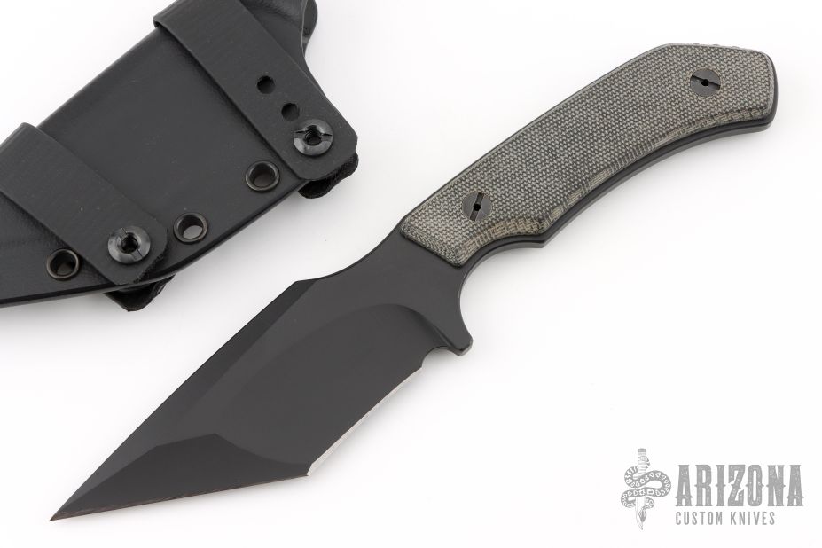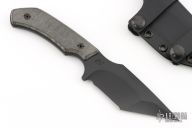 This Drifter Tanto by Jon Sorensen features a black cerakote tanto blade with false top edge, .205" blade stock and 1.524" blade depth, full tang construction with black canvas micarta scales. Comes with original box, kydex sheath and COA dated Feb 22nd, 2019. Excellent condition. 1 of 2 with cerakote.