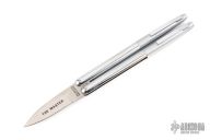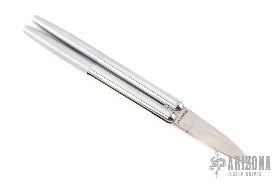 This "The Master" pen balisong by Taylor/Seto features a satin finished blade and a handle that looks like two pens. Comes with original box. Has a couple light scuffs, excellent condition for its age.