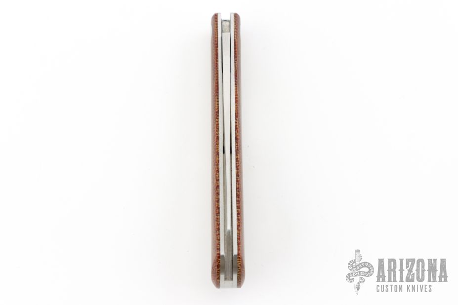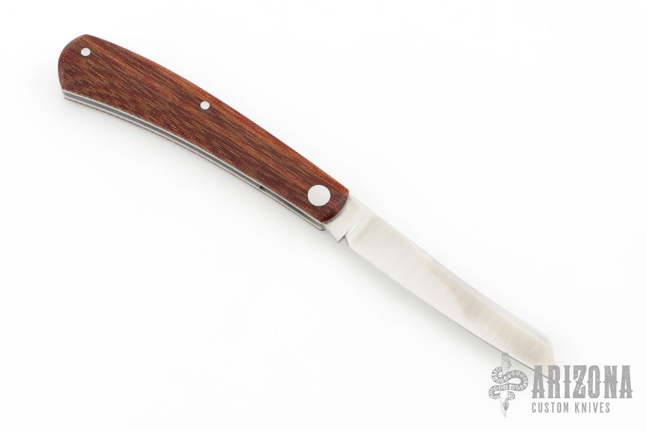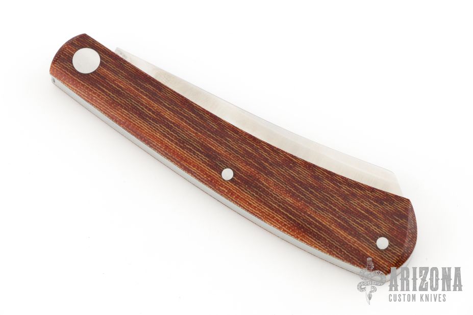 This Dipper Slipjoint by Rhidian Gatrill features a satin finished blade with nail nick. The handle has crosscut brown canvas micarta covers, stainless steel escutcheon, liners and spring. Has half-stop, flush in all positions. Comes with original box and COA dated October 2024. Excellent condition.