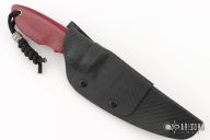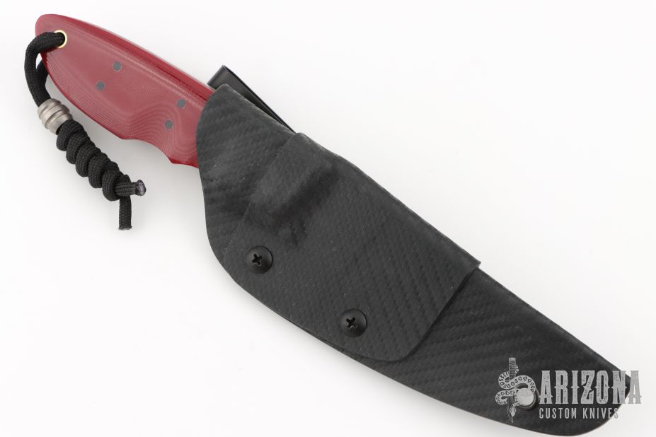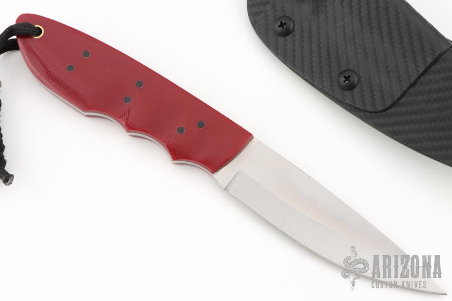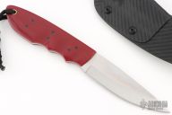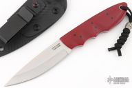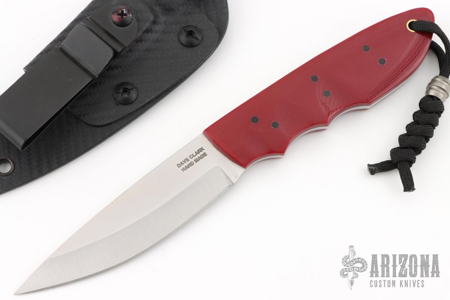 This Hunter by David Lancaster Clark features a satin finished drop point blade, .122" blade stock and 1.085" blade depth, full tang construction. The handle has Red G10 scales. Comes with a kydex sheath. New from maker.