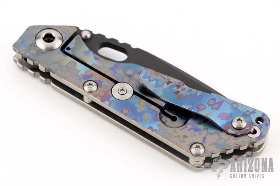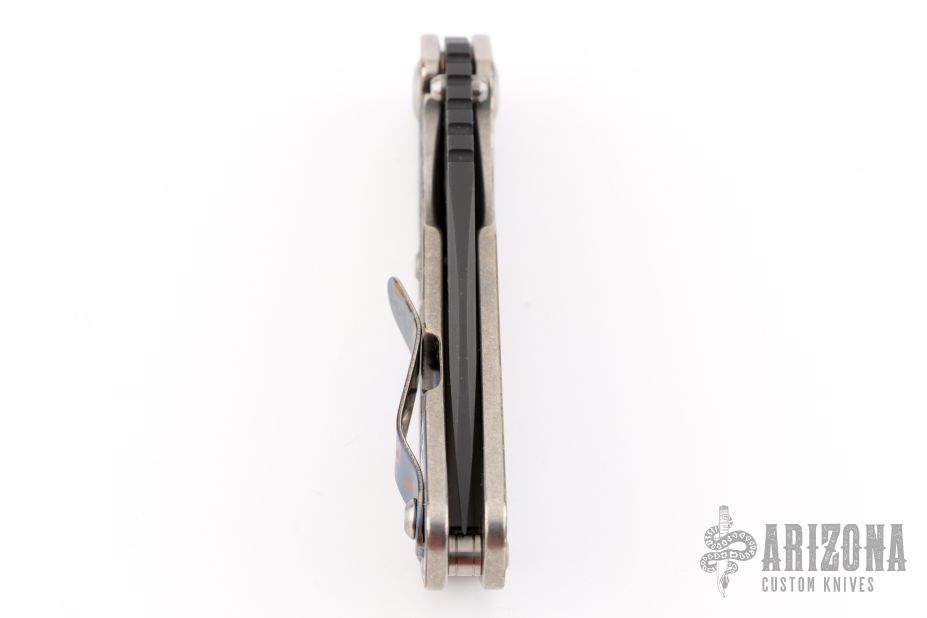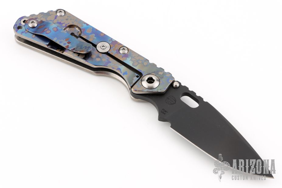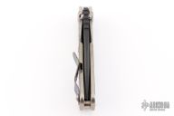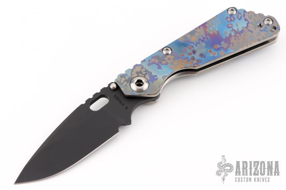 This MS SNG framelock folder by Mick Strider features a black blade and a camo titanium frame and tip up titanium clip. Includes Hinderer "Lock Bar Stabilizer" for maximum reverse lock retention. Nice detent, lockup and blade seating. Excellent condition.