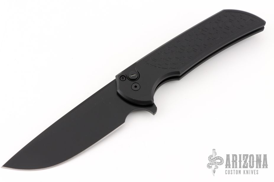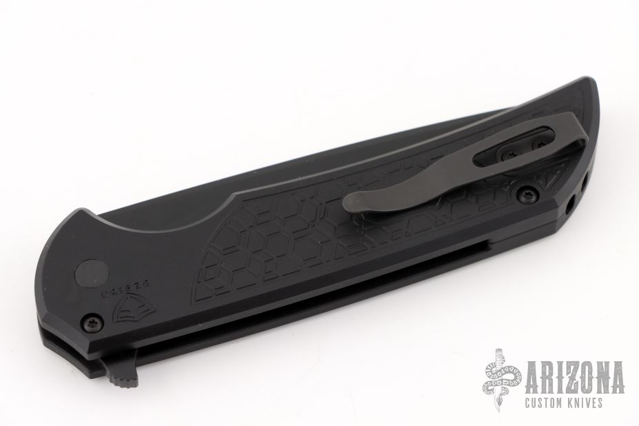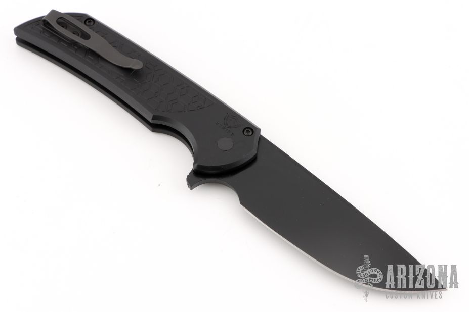 This Mordax by Pro-Tech is a Ferrum Forge design and features a black DLC drop point blade. The handle has a black aluminum frame with black tip up stainless steel clip. Comes with original box, pouch and papers. New from maker at the 2025 Blade Show!