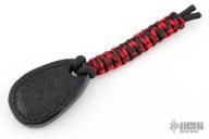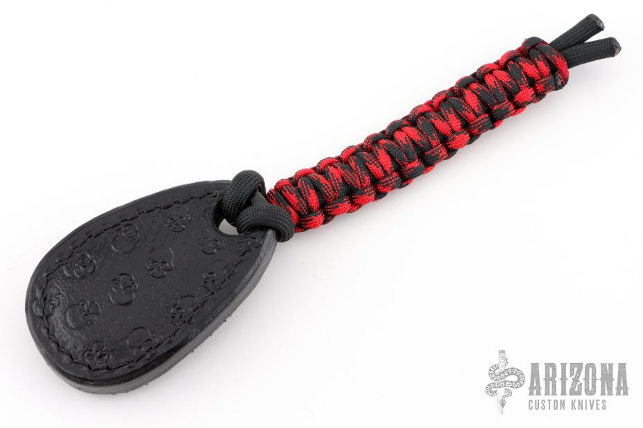 The black leather sap is filled with lead and has a cord lanyard. Made by Mickey Yurco new from maker at the 2025 Blade Show!