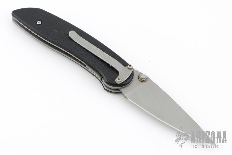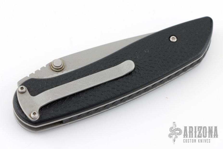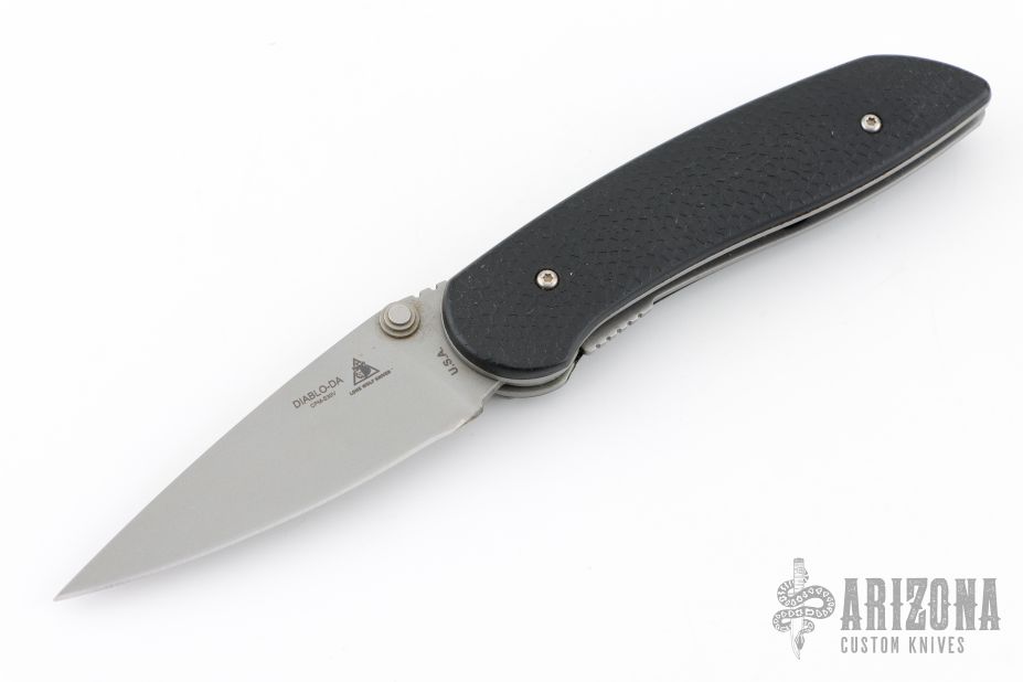 This Diablo D/A Auto by Lone Wolf Knives is a discontinued model. Scale release liner lock auto. bead blasted blade with black FRN scales and stainless steel liners. Tip down bead blasted stainless steel clip. Has some scuffs and scratches, great condition otherwise.