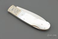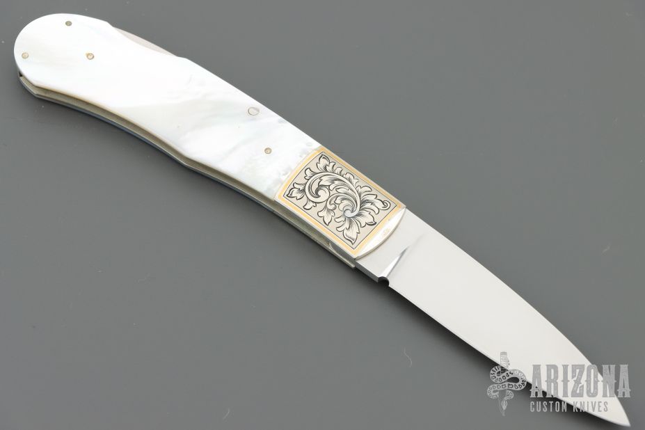 "I got started in knifemaking in 1975 when a friend opened a sporting goods business, which provided an outlet for my knives. I only made fixed blades then, but I started building folders a year later. I like knifemaking because it has turned into an artistic outlet for me. I try never to make two knives exactly alike. I prefer natural handle materials, especially pearl, fossil ivory, and presentation grade woods." Member of The Knifemakers Guild.