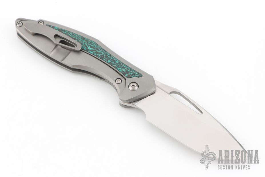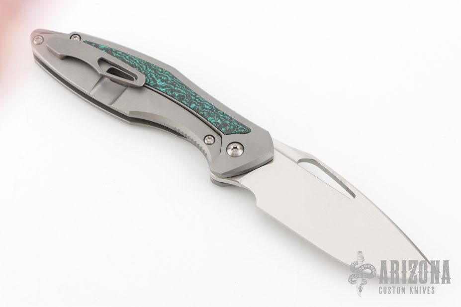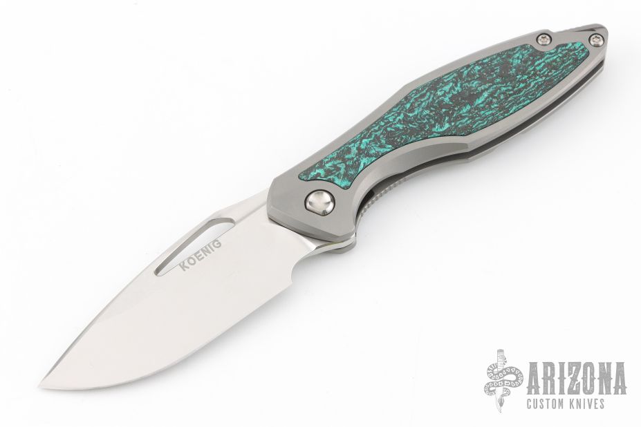 This Mini Arius by Koenig knives features a Brightwashed w/ Polished Flats finished blade with thumbhole. The handle has a bead blasted titanium frame with a CarboTi inlay, titanium tip up clip, titanium backspacer. Has ceramic bearings and a ceramic detent ball. Nice detent, lockup and blade seating. Comes with original box and COA March 31, 2025. Comes with original box, card, and cloth. Excellent condition. Recon1 2025 invitational.