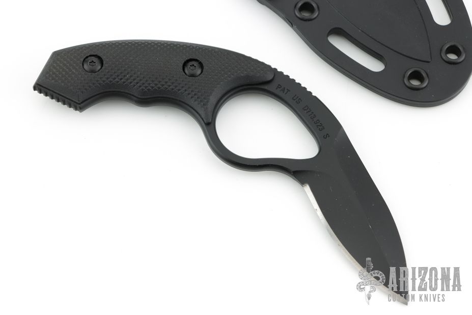 The NCO LowVz™ has a Titanium Nitride (TiN) coating with an AUS-8 stainless steel blade and textured G10 scales. The kit includes the knife, an injection molded trainer, an injected molded sheath with a low concealment appendix-carry clip. The grip is 3” from the bottom of the ring, making this ideal for everyday carry. The NCO LowVz™ from ColonelBlades™ is the ultimate EDC tactical knife for concealment. It carries like a gun, conceals like a gun, and draws like a gun without the need to reload or worry about jams. The innovative design capitalizes on your natural draw style and punch, increasing confidence and agility in tactical blade work.