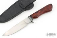 "In 1995 I decided to start making my own knives. By the following year I had begun my addiction to the forged blade. I did not know any local makers at that time, so most of what I learned came from books and even more so from trial and error. I made my first billet of damascus by hand in 1997 on a dare from a friend who said I could not do it. I was successful and after that first billet I was hooked on damascus and I have not looked back since. I received the opportunity to go full time in 1999, thanks to the support of my loving wife and family. That same year I stepped out into the knife community by doing my first show and joining the American Bladesmith Society. Since then I have developed good friendships with many knifemakers and enthusiasts alike. Damascus is employed on 90% of my knives in various patterns. My preferred steels for damascus are 1084 and 15n20. For straight steel knives I have and will employ 1084, 1080, 5160, 52100, S30V, 20CV and Talonite. I do all of my own heat treating which ensures the performance of each and every knife I produce. Routinely I test blades for quality control purposes as well as for future knowledge and developments. My metallurgical knowledge has been acquired not only from studying books and reference manuals but also through years of trials in my own shop always striving for that perfect heat treatment. In 2001 Bill Cottrel, Chuck Bybee and myself developed a process to make Titanium Damascus or TImascus." Earned ABS Mastersmith rating in 2006.