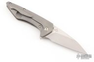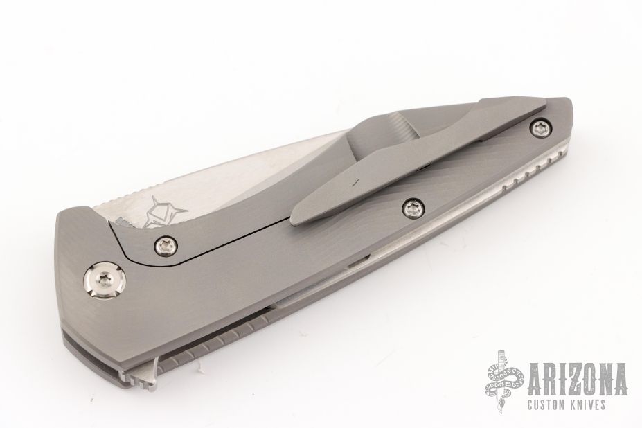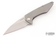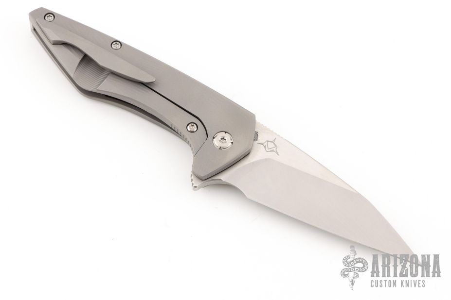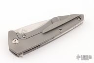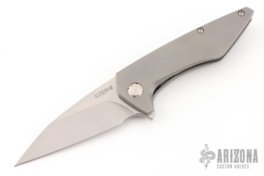 The Koenig Mini-Goblin 3 inch folding pocket knife is a collaboration between Edison Barajas of Sharknivco and Koenig Knives. The Mini-Goblin features a 3 inch burnished w/ PF blade with notched thumbrest and flipper. The handle has a burnished sea pattern titanium frame with a titanium backspacer and pivot/hardware. Titanium tip up clip with hidden screws. Comes with original box and card dated April 3, 2025. Excellent Condition.