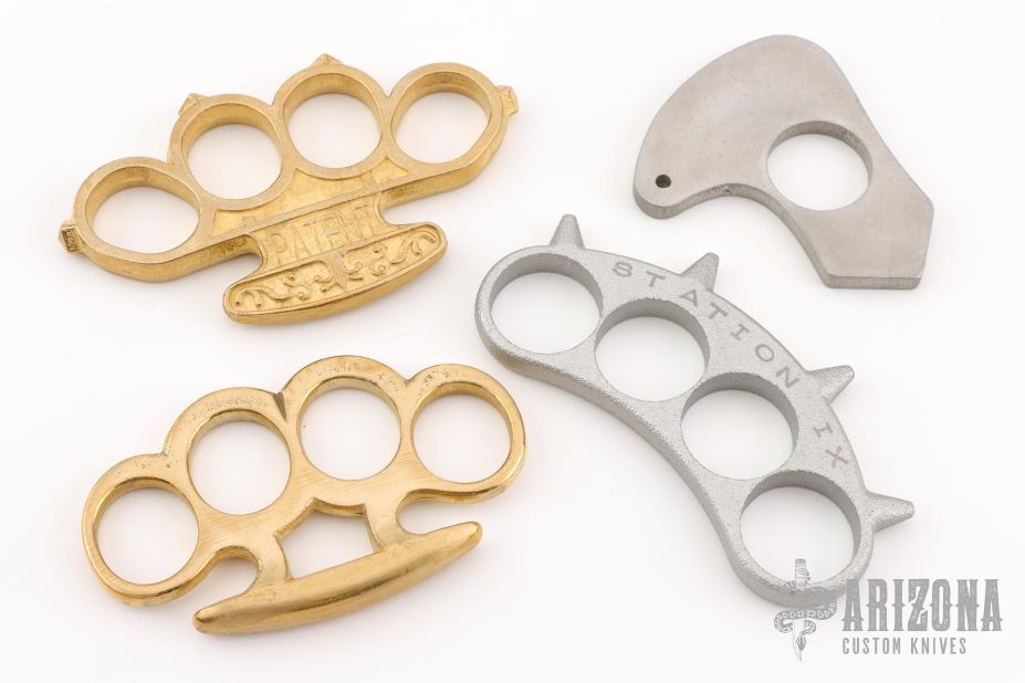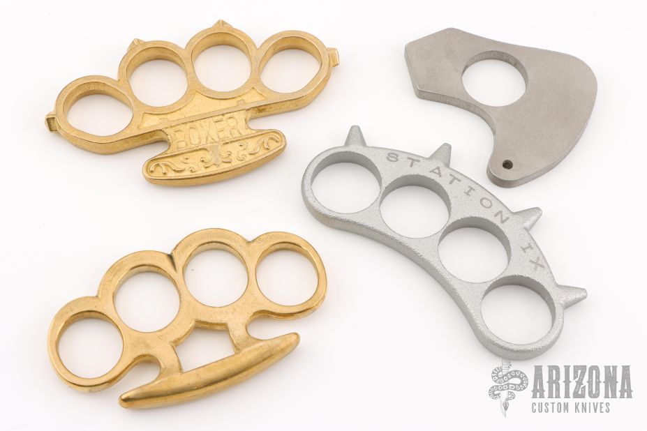 Aluminum knuckle by Fred Perrin. Brass Boxer Knuckles. Brass Knuckles. Aluminum Station IX knuckles. Excellent condition.