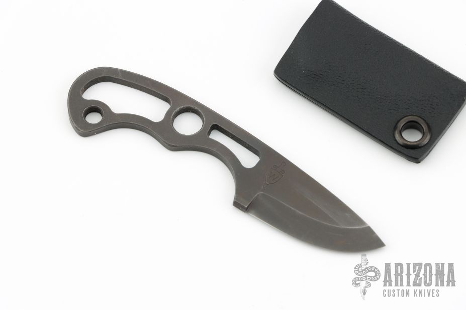 This Aphid by Journeyman Smith Dave Wenger features a black Caswell finished blade, .113" blade stock and .744" blade depth, full tang construction. The handle is skeletonized. Comes with a kydex sheath. It has some light scuffs, otherwise excellent condition. Comes with COA dated 3-20-20
