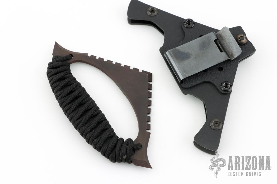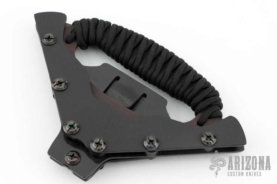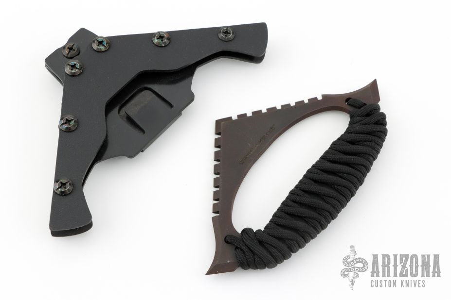 The WK Weapon Retention Tool (WRT) was first developed as an easily accessible tool that would provide a “turn it loose” reaction when an operator’s/officer’s primary weapon was grabbed by a bad guy. It works! It is designed as a defensive rather than offensive tool that has gained favor among hikers, joggers and cyclists because it is lightweight and an effective personal protection. The paracord wrapped handle provides grip and can also come in handy in an emergency. Available in two sizes and includes a thermo-form carrier with a spring steel belt clip or Molle loops for vest/pack carry. Tool Specifications - Regular Blade steel: 80CrV2 Black oxide no-glare finish Tool height: 3 1/2" Tool width: 6" Hand opening: 3 3/4" w X 2 3/16" t Blade thickness: 1/8" Sheath Un-Lined Kydex® Spring steel, belt clip Designed for multiple carry options (See our Info page for carry options) Comes with original packaging. Excellent condition.