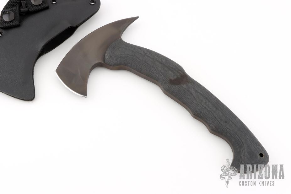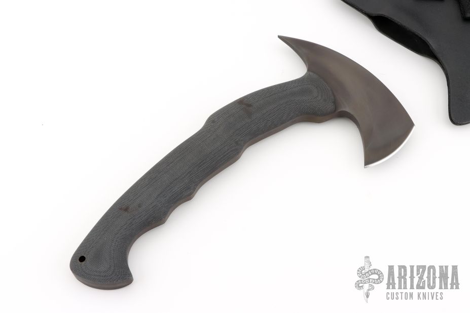 The WK RnD Axe Series is a collaborative design between Master Bladesmith Daniel Winkler and skilled Sayoc Kali martial arts trainer Rafael Kayanan. The handle design provides a standard grip position, as well as a secondary close quarter grip that was developed to emulate the feel of a handgun grip. The optional front spike (6 - 8 month delivery) is a valuable feature in combat usage.