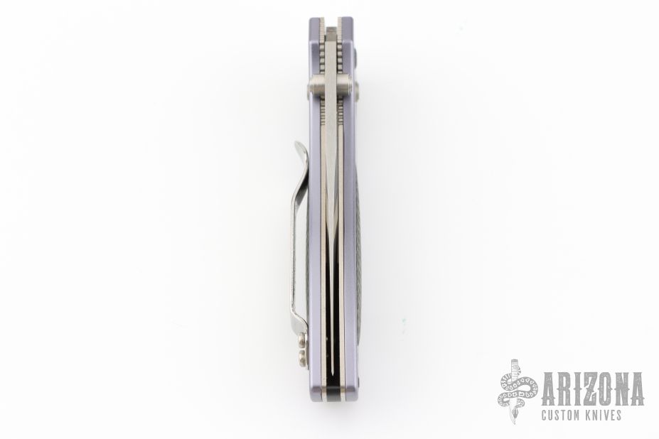 This Sequel by Benchmade features a satin finished drop point blade with swedge, and dual thumb studs. The handle is comprised of machined and anodized aluminum scales with carbon fiber inlays, over stainless steel liners and black backstrap. Polished reversible tip up clip. Includes original box, pouch and papers. Has a couple light scuffs, otherwise Excellent condition.