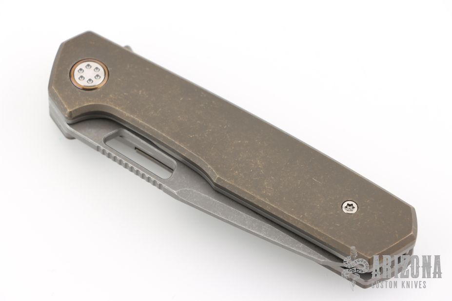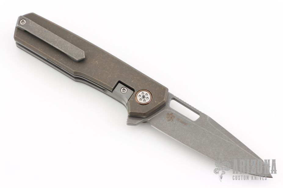 This Oeser Collab Nebo V2 by Mechforce features an acid stonewashed blade with thumbhole, notched thumbrest and flipper. The handle has stonewashed titanium scales with a bead blasted titanium frame, stonewashed titanium backspacer and anodized titanium pivot collars, tip up stonewashed titanium clip. Comes with original box and hard case. New from maker!
