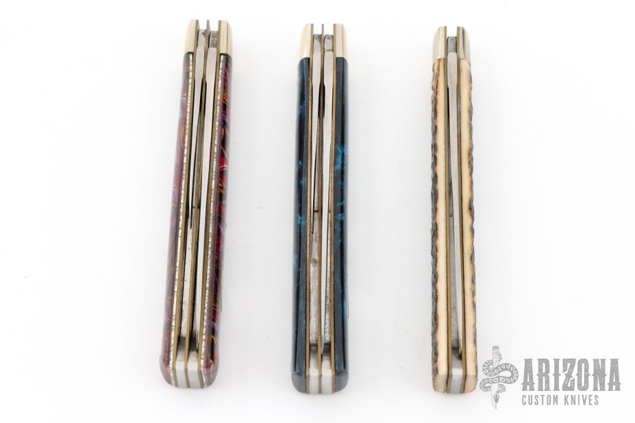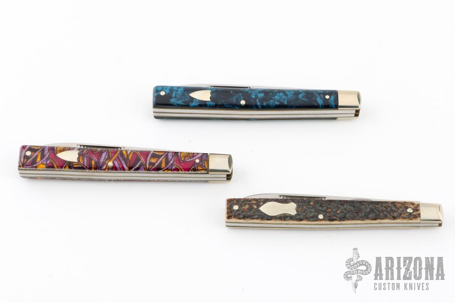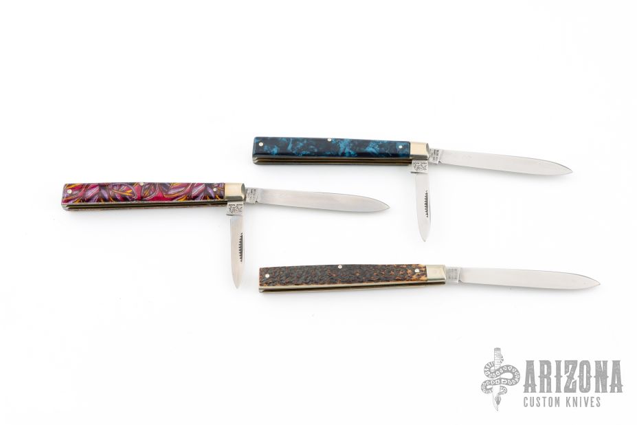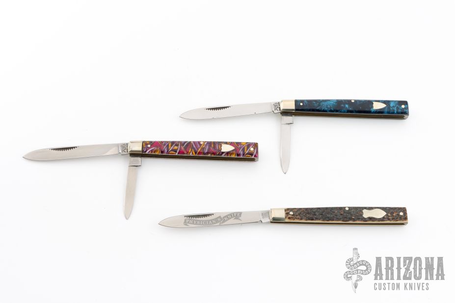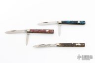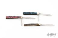 This Doctors Knife slip joint by Bull Dog Knives features a drop point blade with nail nick. The handle has nickel silver double bolsters, brass liners, acrylic covers, brass liners and stainless spring. Has a few light scratches, otherwise excellent condition. Has a pen blade. Blade is marked BD00, 1995.