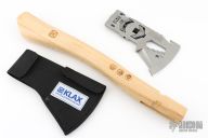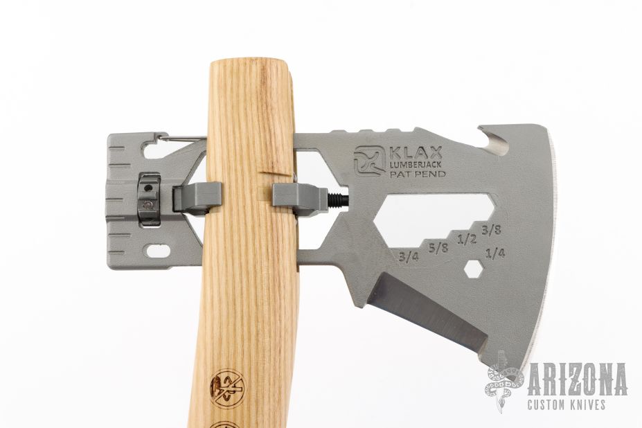 The KLAX was awarded "Most Innovative Design" at the 2014 BLADE Show. It's an incredible axe/multi-tool from Glenn Klecker that enables users to carry a strong and capable ax while virtually eliminating the bulk of packing a traditional axe. This stand-alone ax head features a nested clamping system for attachment to a wood handle. You can buy one of the Klecker handles or fashion one of your own using a stick. It's a simple process and wildly satisfying.