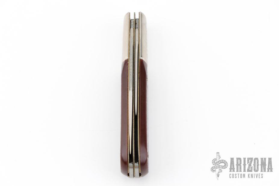 This Barlow by Imperial features two polish finished blades with nail nicks and longpull. The handle has steel bolsters, sawcut scales, steel liners and springs. Has some scratches and patina, otherwise excellent condition.