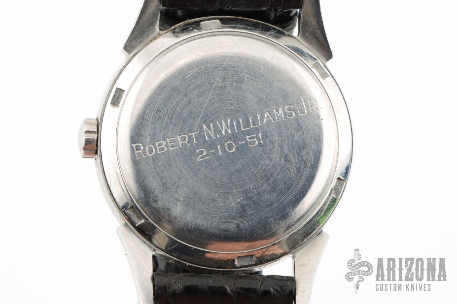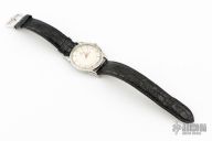 33mm case, has croci strap attached. Has scuffs and scratches, but in overall great shape for its age. Winds and ticks. Doesn't come with anything.