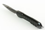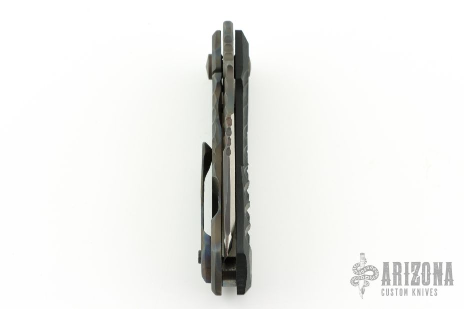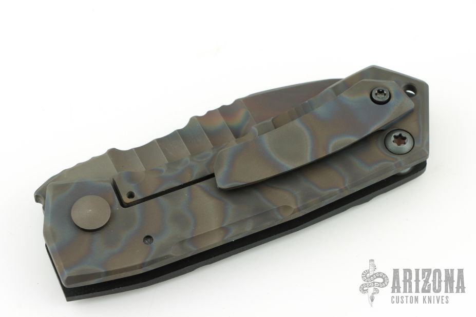 This Metro framelock folder features a "Phantom" finished chisel ground blade with a notched thumbrest and fuller. The handle is comprised of a flamed titanium frame and contoured black G-10 scale with a lanyard hole at the butt. Matching titanium clip positioned for tip up carry. Nice detent, lockup and blade seating. Comes with original hard case and papers. Excellent condition.