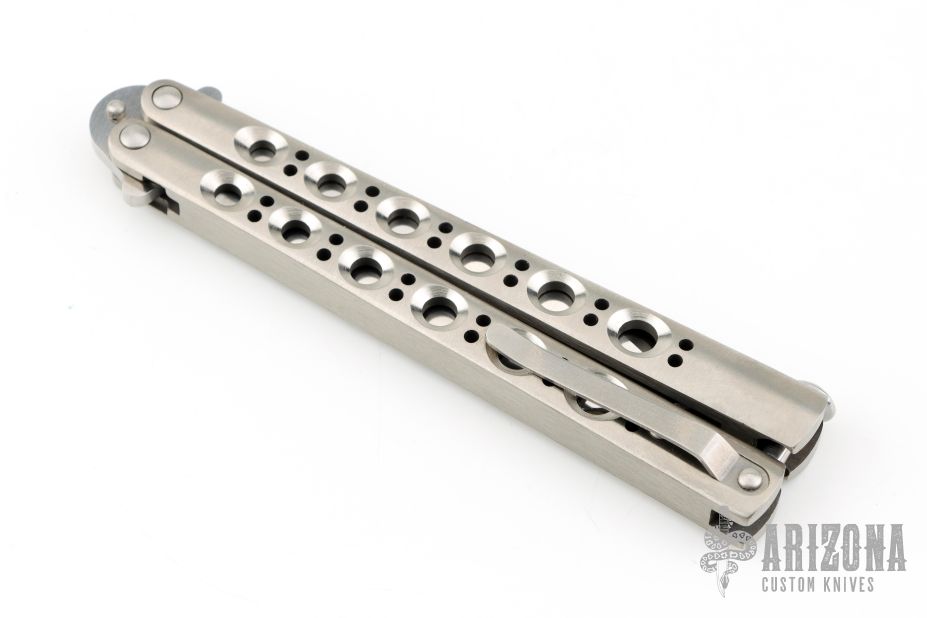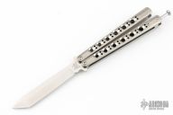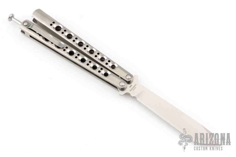This Model 47 Balisong has a stonewashed tanto blade. Handle is titanium. Has tip up clip and spring latch. Comes with original box and papers. Excellent condition.