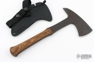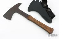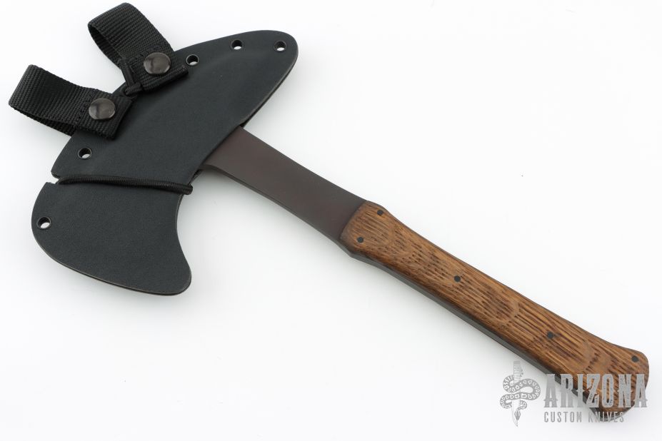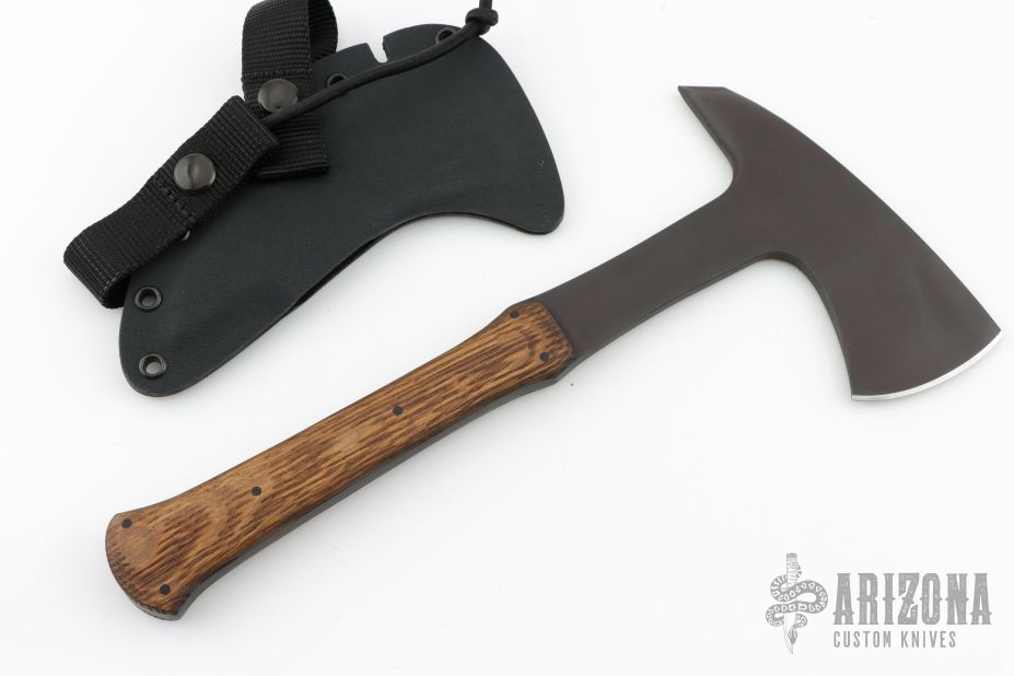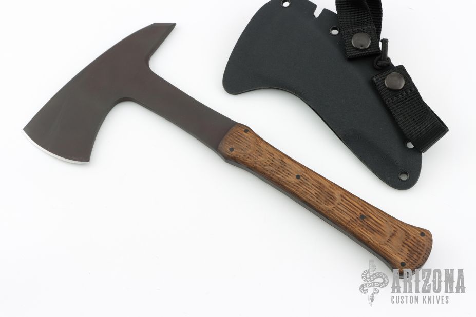 The WK Twenty 24 was designed incorporating observations from other axes made by Winkler Knives. Some of the Tier 1 Team specific axes have more of a cutting edge that performs very well, so we gave the WK Twenty 24. The most common repair we make is to full length wooden handles on full tang axes- often, a miss-lick or attempting to split logs will cause damage. We shortened the handle scales, leaving the tang exposed to take the brunt of abuse. We learned from the WK Twenty 24 Axe that 1/4" steel balances incredibly well and has quicker action so we chose the thinner steel, rather than our typical 3/8" stock. Also, the rear spike is effective for breaching and/or combat applications, and it is also an effective digging tool.